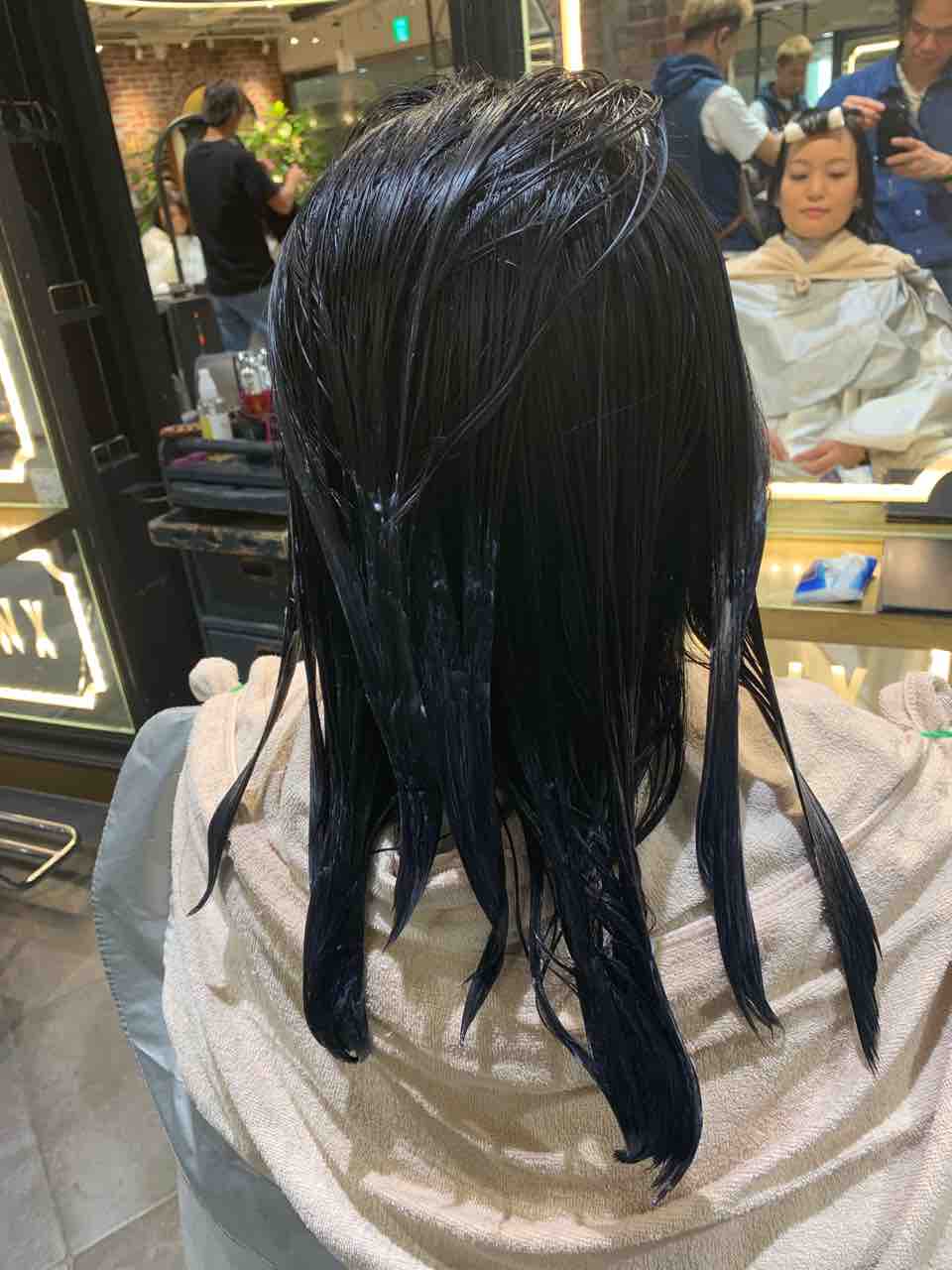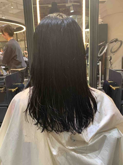 長さはロング、縮毛矯正とデジタルパーマを繰り返していますので、薬剤は慎重に計算します。